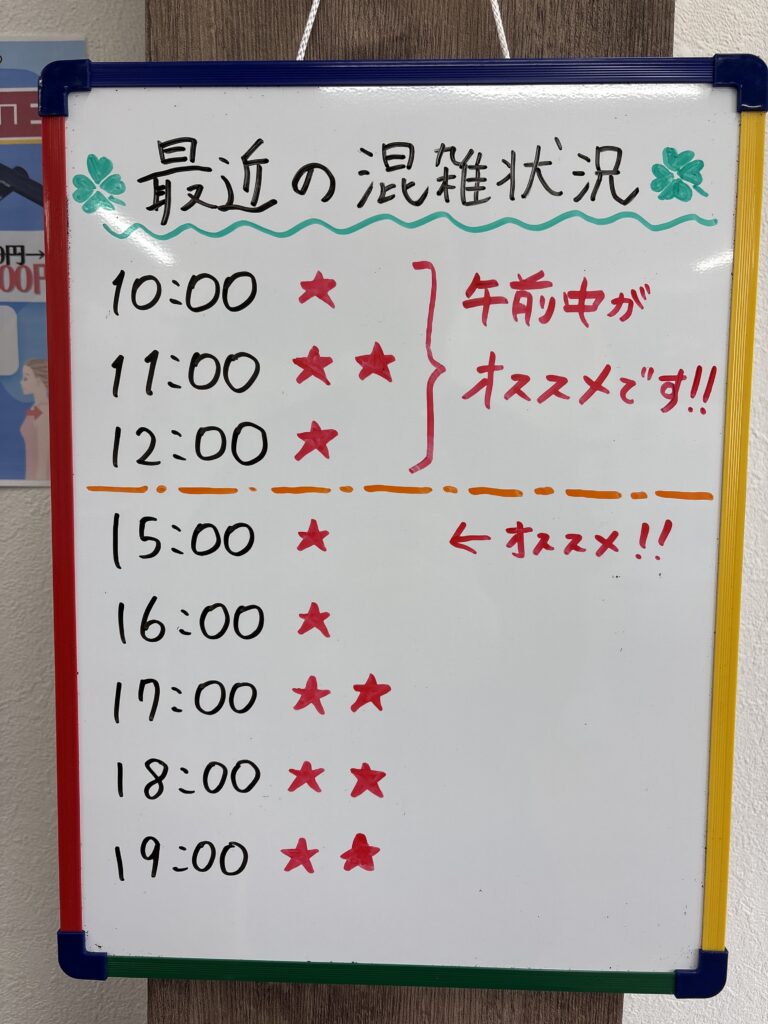 こんにちは!下総中山よつば鍼灸院・接骨院です🍀 最近の混雑状況です! 最近は午前中が空いており、スムーズにご案内できます! 午後も17時までは比較的空いております😌 寒さで身体が痛くなりやすい時期なので、治療して痛みの出ない状態を作りましょう💪 -