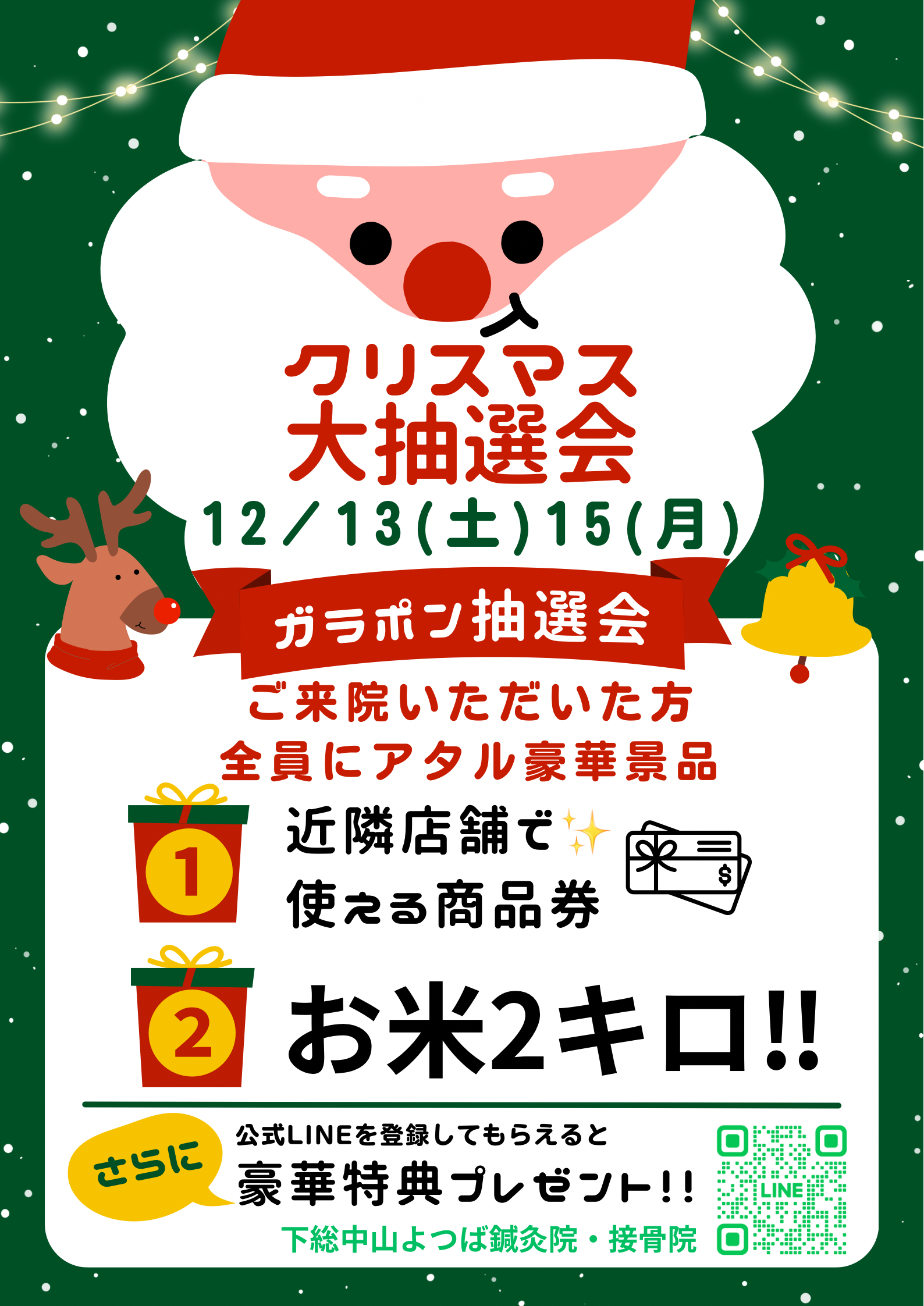 12/15(月)、クリスマス大抽選会を院の前で開催しております😄