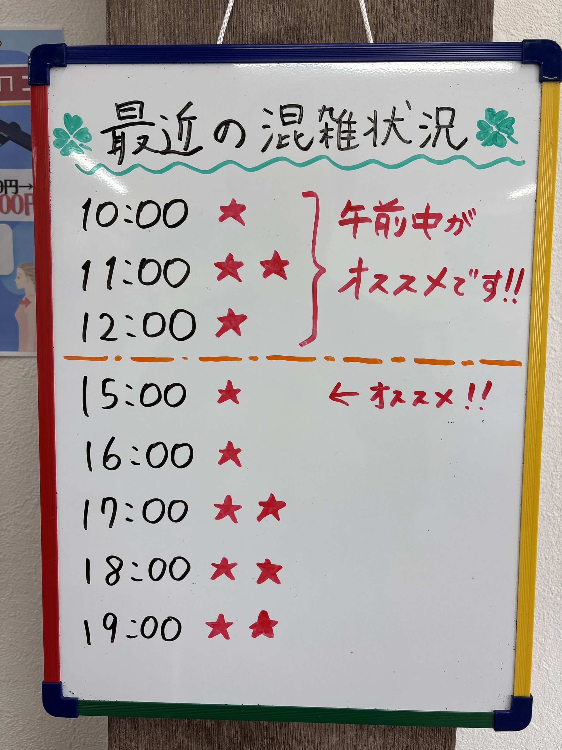 最近の混雑状況🗓️ 2026 1/08 ブログ January 8, 2026 こんにちは!下総中山よつば鍼灸院・接骨院です🍀 最近の混雑状況です! 最近は午前中が空いており、スムーズにご案内できます! 午後も17時までは比較的空いております😌 寒さで身体が痛くなりやすい時期なので、治療して痛みの出ない状態を作りましょう💪 ブログ よかったらシェアしてね! URLをコピーしました! URLをコピーしました!