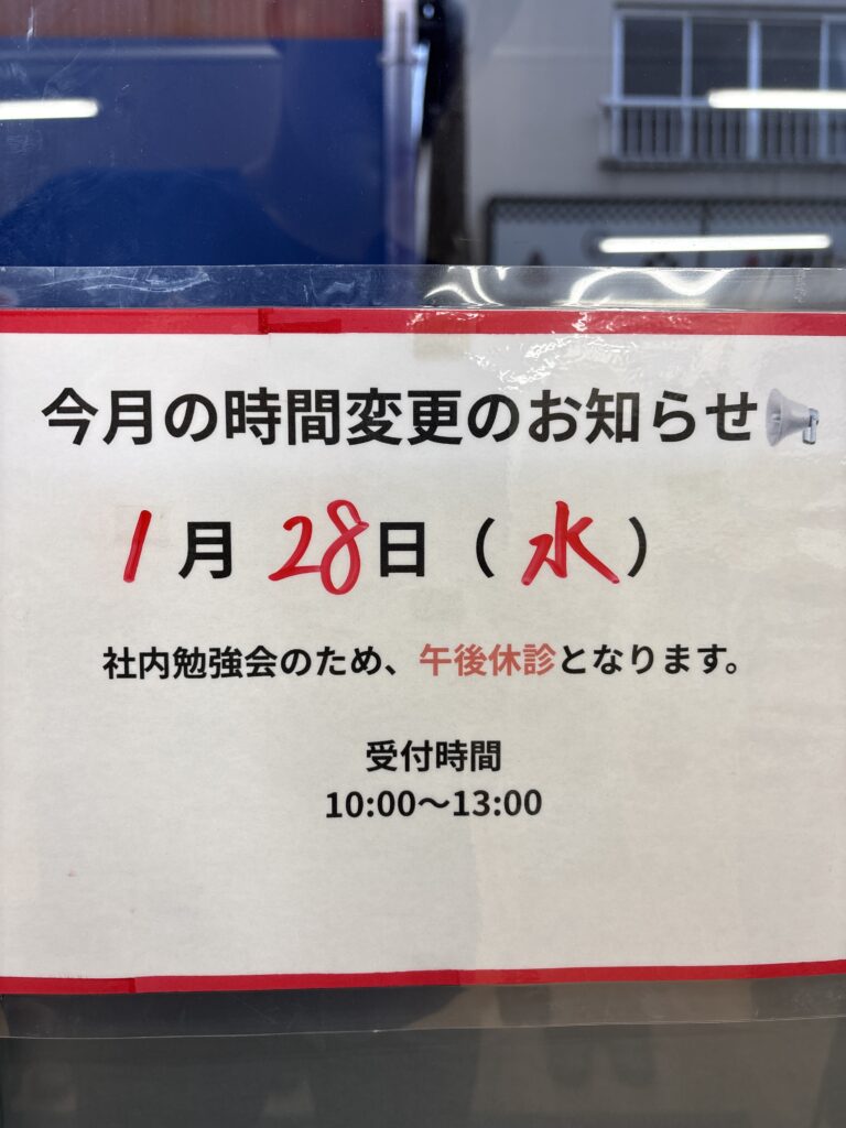 1/28(水)、午前診療のみです! 2026 1/24 ブログ January 24, 2026 お知らせです📢 1/28(水)は第4水曜日のため、午後休診となります。 受付時間は10:00〜13:00です😄 お間違えのないようお気をつけください🍀 ブログ よかったらシェアしてね! URLをコピーしました! URLをコピーしました!